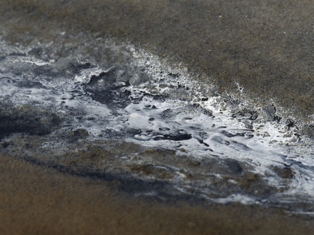 Weiße Fäden auf schwarzem Schlick