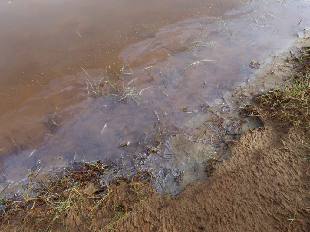Keine Angst: Diese schillernden Flächen auf den Pfützen und Gräben bestehen nicht aus Öl. Das ist Rost.